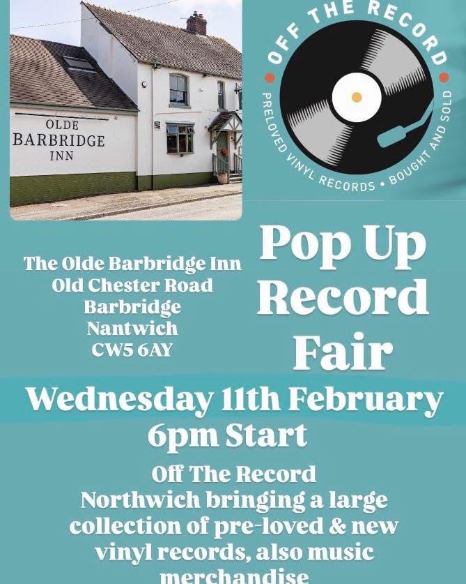 🎶 POP-UP RECORD FAIR AT THE OLDE BARBRIDGE INN 🎶 Join us on Wednesday 11th February from 6pm as we host a Pop-Up Record Fair right here at the Olde Barbridge Inn. Whether you’re a seasoned collector or just love the thrill of flicking through vinyl, it’s the perfect chance to buy, sell, trade and dig for rare records — all with a pint in hand and great company around you. 🍺💿 Expect cracking tunes, proper pub atmosphere and plenty of nostalgia. Pop down, have a browse and make an evening of it — we’d love to see you. Helen, Jamie and the Team The Olde Barbridge Inn