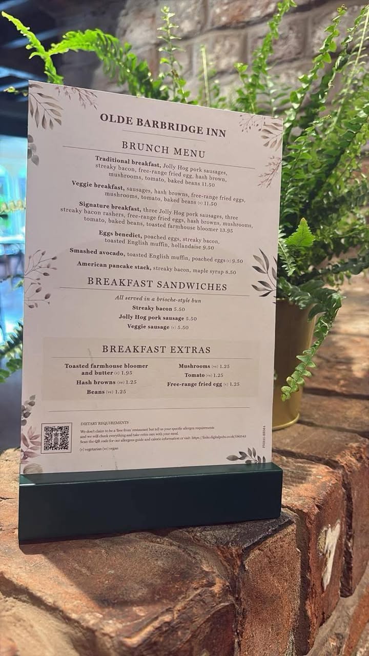A | LOVELY | SATURDAY | START ☀️ Why not begin the weekend with us and enjoy breakfast or brunch served from 10am… Plenty of delicious options on the menu to suit everyone — no booking needed, just come along and tuck in! 😀👍🏻 Takeaway available too if you come down and collect 👍🏻😉 Helen, Jamie & The Team The Olde Barbridge Inn