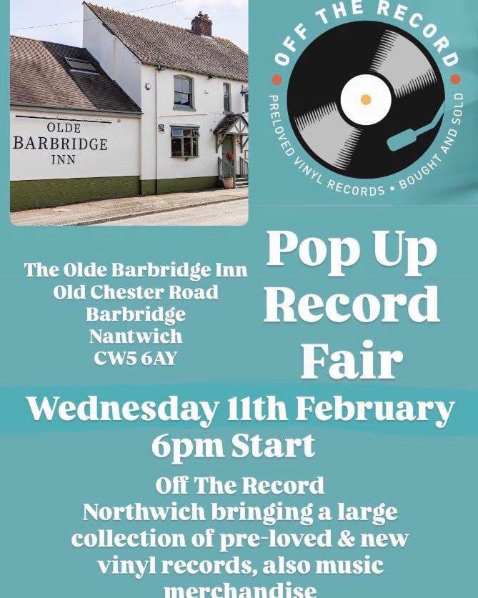🎶 POP-UP RECORD FAIR AT THE OLDE BARBRIDGE INN 🎶 Join us this Wednesday 11th February from 6pm as we host a Pop-Up Record Fair right here at the Olde Barbridge Inn. Whether you’re a seasoned collector or just love the thrill of flicking through vinyl, it’s the perfect chance to buy, sell, trade and dig for rare records — all with a pint in hand and great company around you. 🍺💿 Expect cracking tunes, proper pub atmosphere and plenty of nostalgia. Pop down, have a browse and make an evening of it — we’d love to see you. Helen, Jamie and the Team The Olde Barbridge Inn