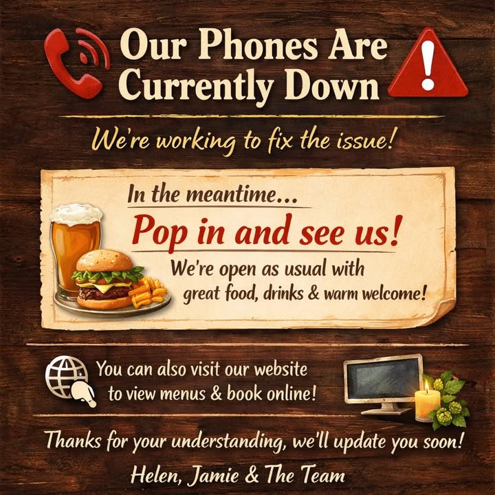 📞 A Quick Heads-Up for Our Guests 📞 Just to let you know, our telephone lines are currently temporarily down. Our team is already on it, and we’re hoping to have everything back up and running as soon as possible. In the meantime, you’re very welcome to pop in and see us as usual — we’re open, serving great food and drinks, and ready with a warm welcome. 😊 You can also find our menus and book online via our website. Thanks so much for your patience and understanding — we’ll update you as soon as the phones are back. Helen, Jamie and the Team The Olde Barbridge Inn