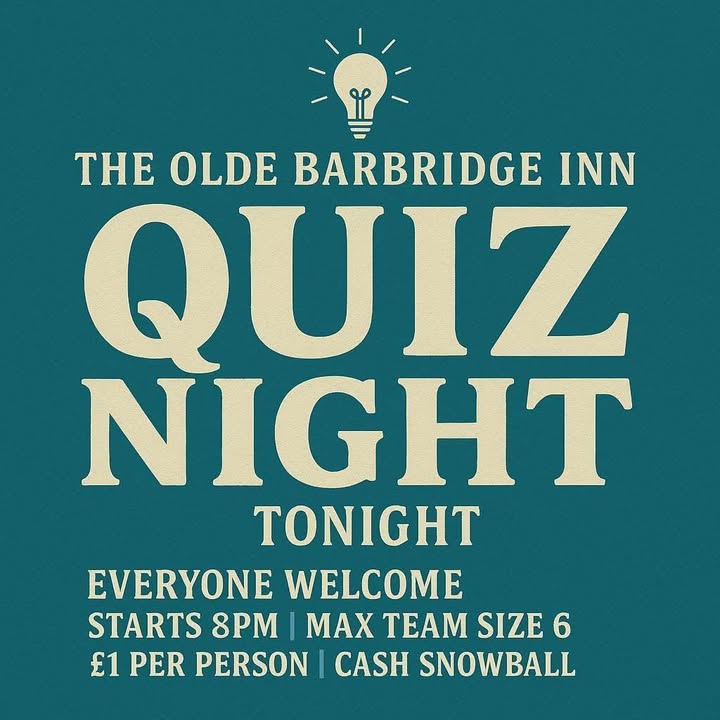 🧠✨ QUIZ | NIGHT | TONIGHT ✨🧠 Thursday evenings are made for Quiz Night at The Olde Barbridge Inn! 🙌 Bring your best team and join us from 8pm for a fun, friendly night of brain-teasing questions and the chance to take home the cash snowball! 💷 Just £1 per person | Teams up to 6 | Everyone welcome… Make it a proper night out with great food — from bar bites and burgers to hearty mixed grills — plus our popular Two Classics for £23.50 offer is on too. It’s always a cracking atmosphere on a Quiz Night… we can’t wait to see you! 😍 👉 https://barbridgeinn.com #theoldebarbridgeinn #quiznight #thursdayfun #goodtimes #burgersandbeer #britishclassics